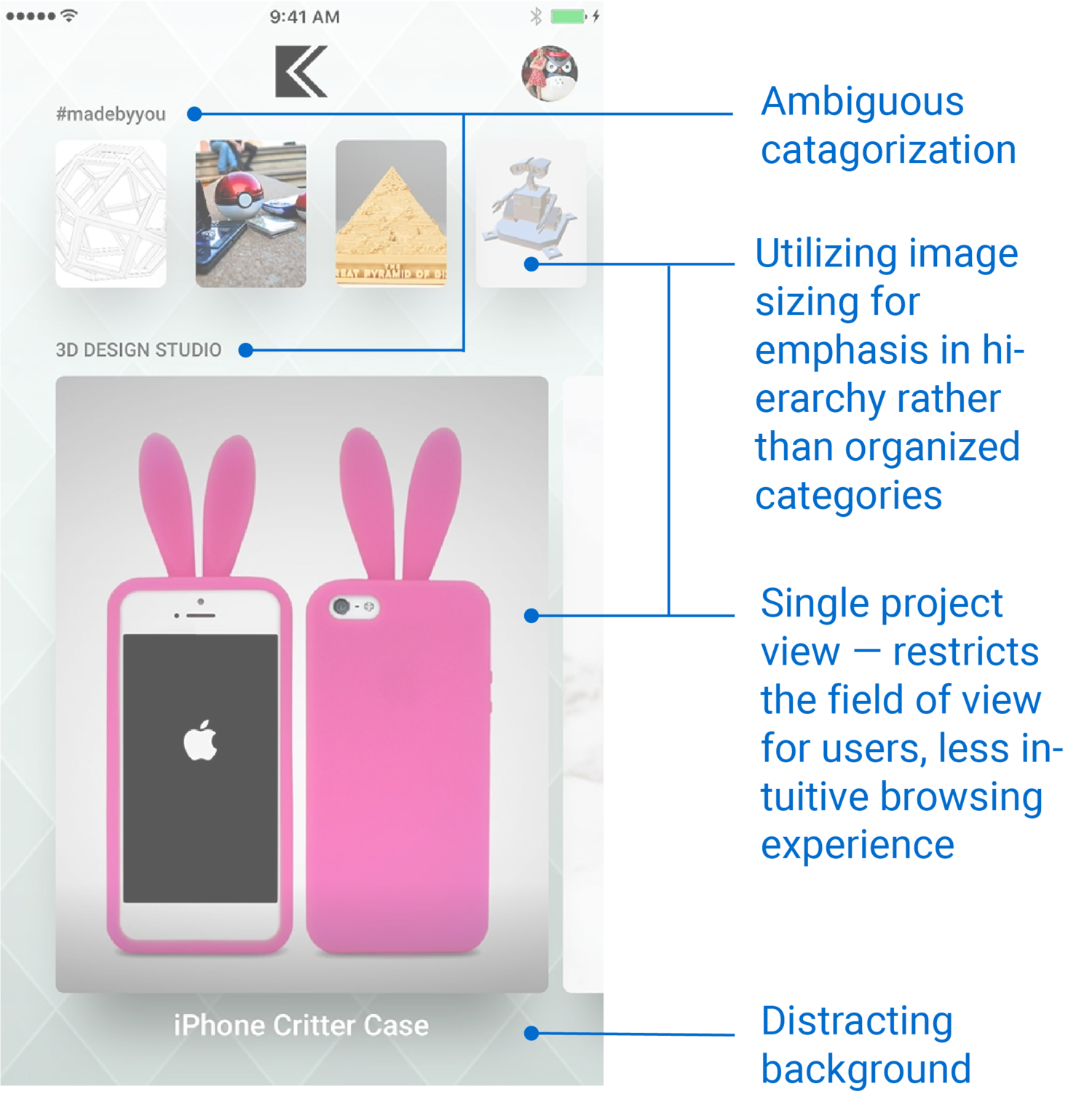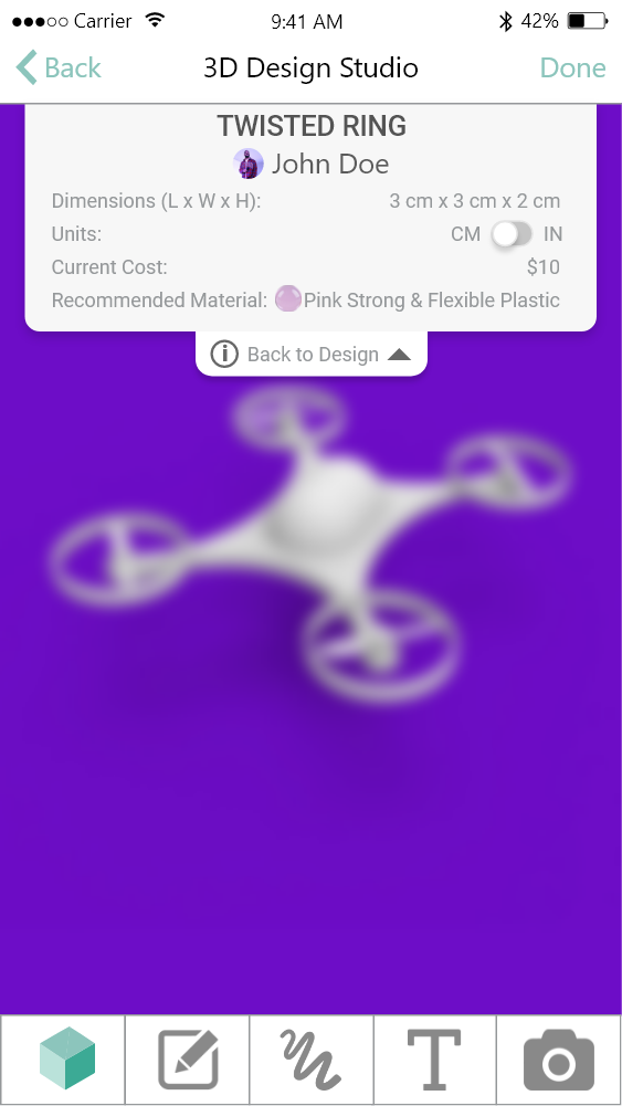 KiraKira3D focuses on utilizing CAD design to teach generation Z youth engineering and creative skills — especially girls. I redesigned the app and incorporated a social media platform, CAD design capabilities, and a creative marketplace. It would allow users to seamlessly customize templates or upload their own designs, explore the works of other users in the community, level up by making, and shop designs from other users. My design had increased the rate of downloads twofold, and was featured in Apple's show Planet of the Apps. Here it is on the App Store